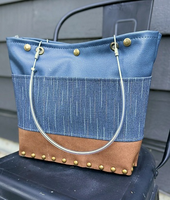 Wooden base has feet to help keep bottom clean. Two comfortable cable handle holds 4 inside pockets, 4 outside pockets and 3 snaps for closure. Measures 11 1/2″ x 3 1/2″ x 11″.